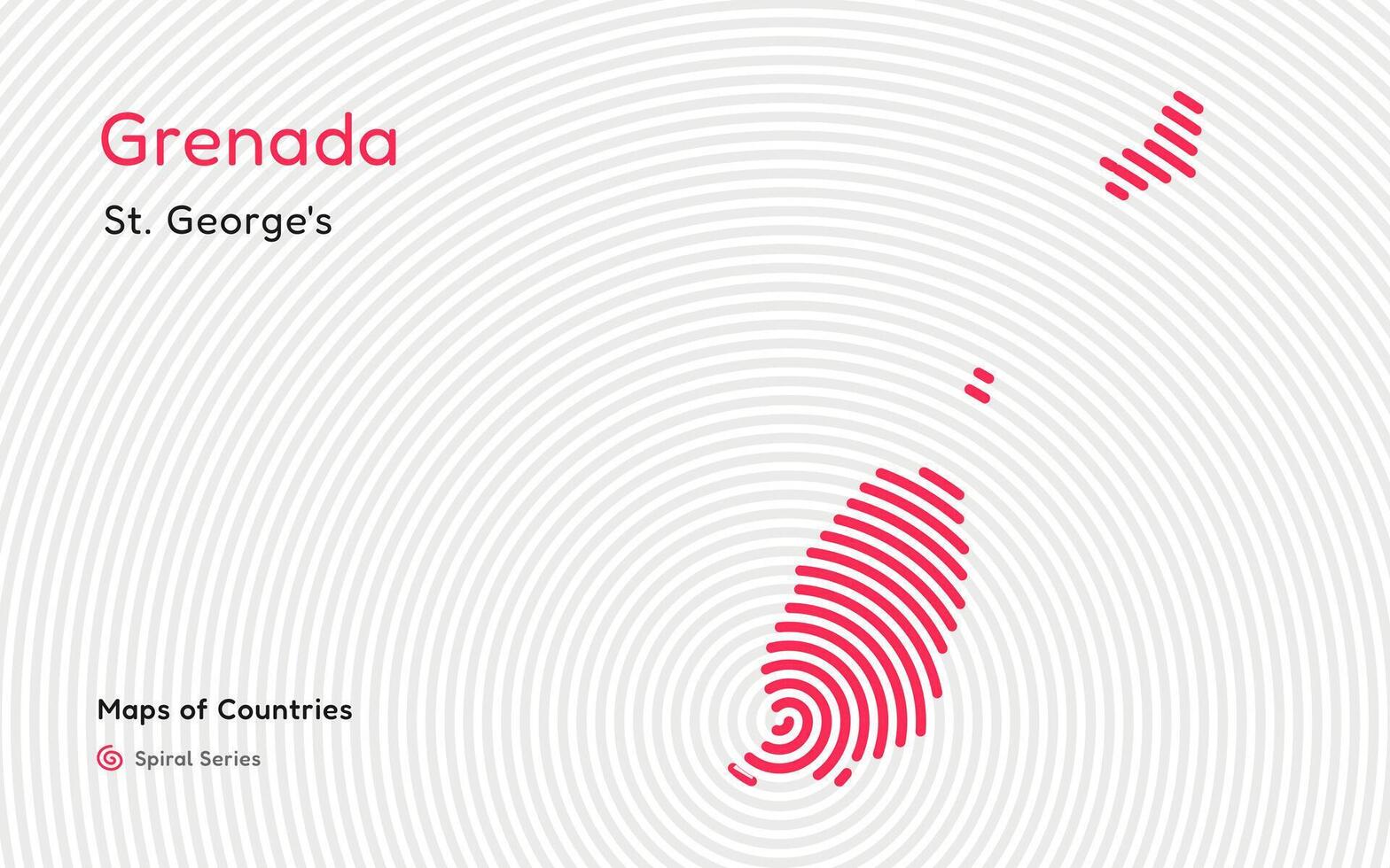 Abstract Map of Grenada in a Circle Spiral Pattern with a Capital